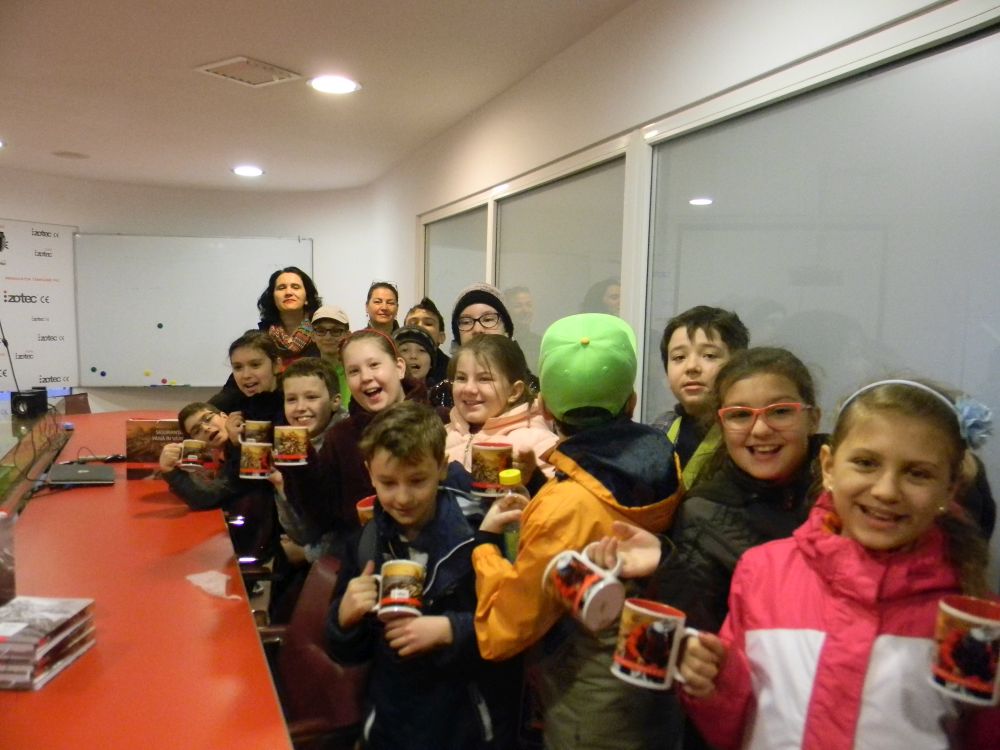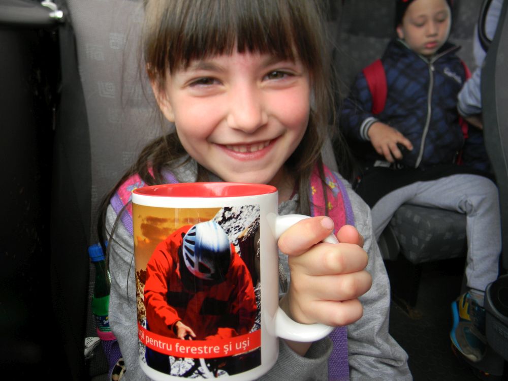 Ultimul pas l-am făcut în showroom-ul fabricii, unde ne aştepta aceeaşi doamnă brunetă care ne întâmpinase la sosire. Aici erau expuse toate modelele de ferestre din termopan care puteau fi comandate. Doamna avea pentru noi o surpriză. Dintr-o cutie mare de carton, a scos pentru fiecare câte o cană inscripţionată cu sigla Izotec şi numele noastre, ca să ne amintim peste ani că am fost acolo. Când am primit căniţa am simţit că şi eu fac parte din acea instituţie.